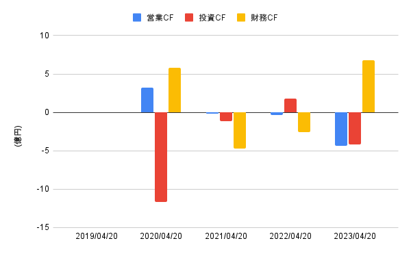 投資活動にともなうキャッシュの収支を示す投資キャッシュフローは前年比▲5億9054万4000円の▲4億1532万3000円でした。
