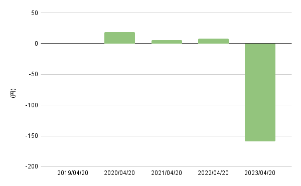 1株あたりの利益額を示すEPSは▲158円(端数切り捨て)。