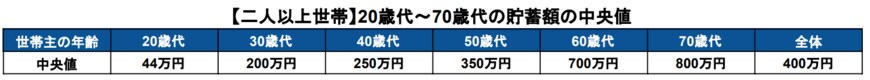 3. 【二人以上世帯】20歳代~70歳代の貯蓄額の中央値はいくらか
