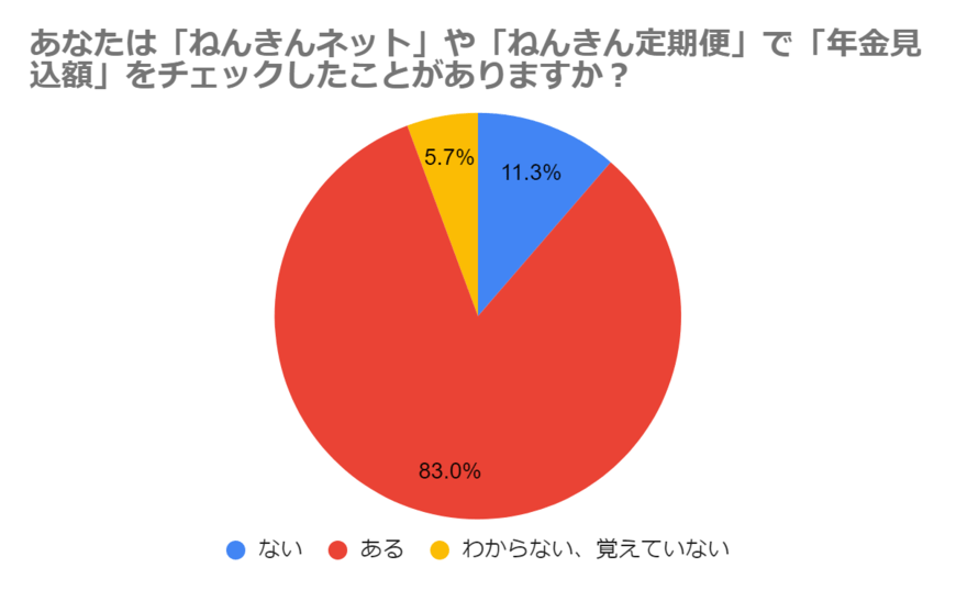 実際、LIMOがアンケートした調査によると、50歳以上で「ねんきん定期便などで見込額をチェックしたことがある」という人は83%にのぼりました。