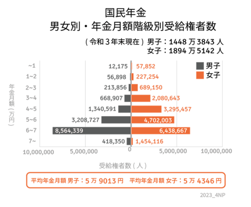 ボリュームゾーンは「6万円以上7万円未満」でした。参考までに、2023年度の満額受給額は6万6250円(月額)です。