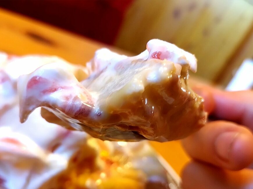 実際に食べてみると表面のサクサク感はソースやソフトクリームで薄れてしまう印象ですが、いちごの酸味と濃厚カスタードは見事にマッチ。ふわふわな熱いパン生地と冷たいソフトを合わせると不思議な感覚ですね。