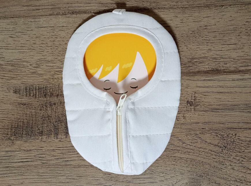 2023年12月には、写真のような「ぬいぐるみ用の寝袋」が販売されているのを発見しました。カラーは、ホワイトとグレーを確認できました。