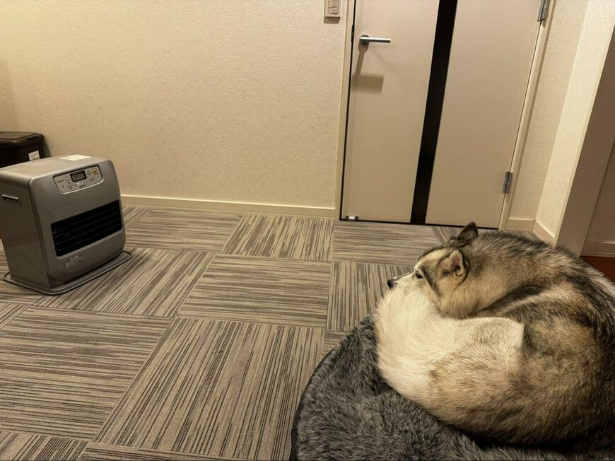 ヒーターの温もりを気持ちよさそうに満喫する、シベリアンハスキーの様子がX(旧Twitter)で注目を集めています。