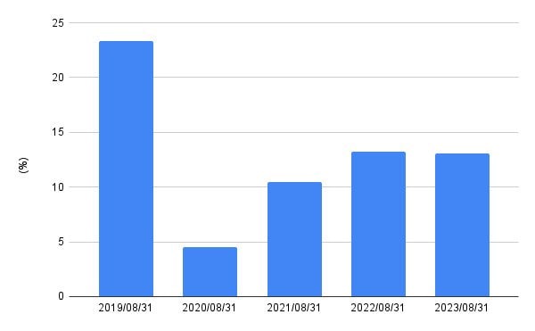- ~2023年8月:13.11%