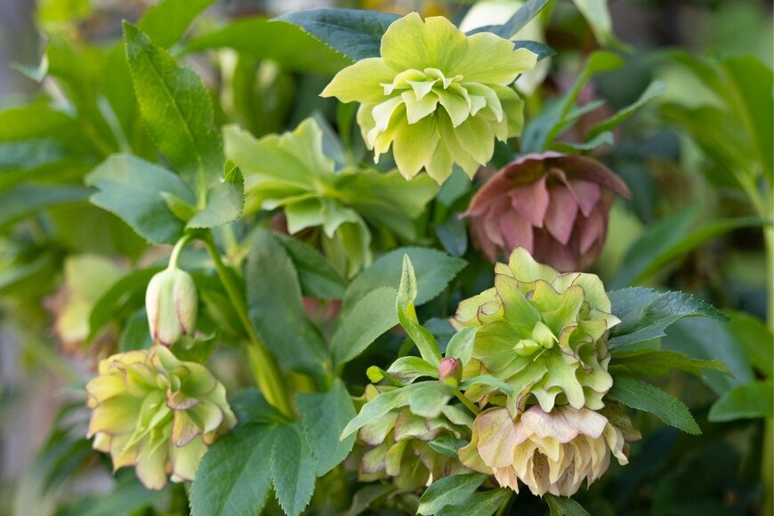 クリスマスローズの根は深く進む性質があるので、鉢植えの場合は、深い鉢を選ぶのがおすすめ。シェードガーデンでも元気に育つ、初心者でもお世話しやすい花です。