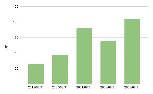 - ~2023年8月:105円