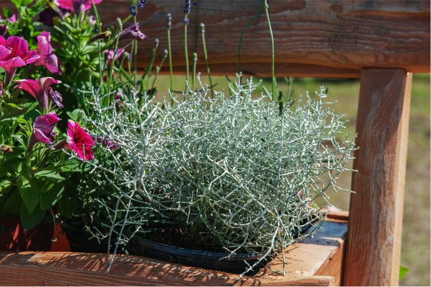 シロタエギクは多年草で、生育が旺盛。茎が伸びて太くなり、大きく生長します。株を更新したいときは挿し芽がおすすめ。簡単に増やせるので、個人の範囲内で楽しみましょう。※参考価格:100~400円前後(3号ポット苗)