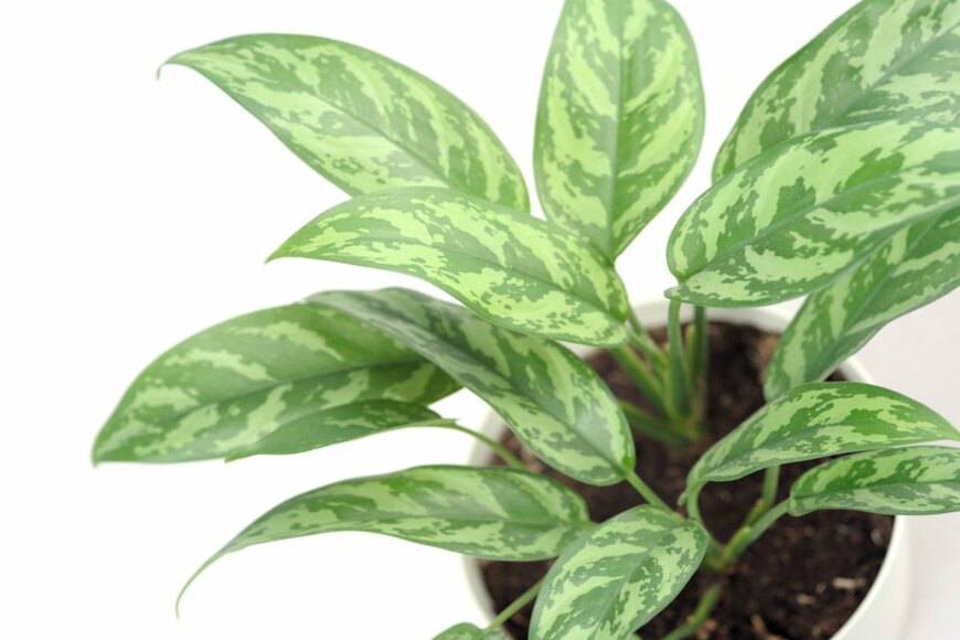 アグラオネマは葉に入る模様が個性的。白やピンクの斑入りのほか、緑の濃淡で迷彩柄のような葉もあり、バリエーション豊かな葉色を楽しめます。
