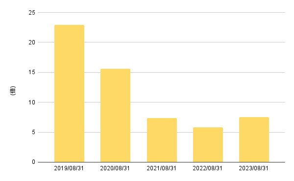 投資活動にともなうキャッシュの収支を示す投資キャッシュフローは前年比+1億2406万4000円の▲8億2218万1000円でした。