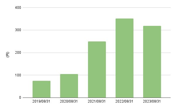 1株あたりの利益額を示すEPSは318円(端数切り捨て)。