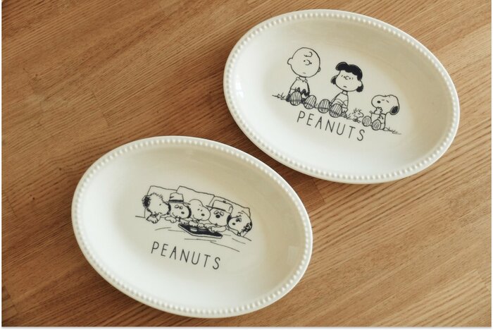 『cookpad plus』2024年冬号の豪華付録、スヌーピーのオーバル皿は、イラストの異なる2枚セット。