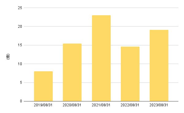 - ~2023年8月:19.11倍