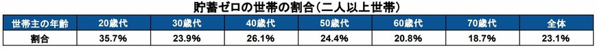 全世代平均でみると、23.1%の世帯は貯蓄がありません。意外と貯蓄ゼロの世帯が多いことがわかります。