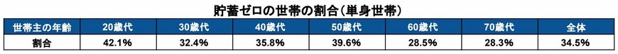 全世代平均でみると、貯蓄ゼロの世帯は34.5%にも及びます。単身世帯の約3世帯に1世帯は貯蓄がありません。