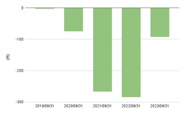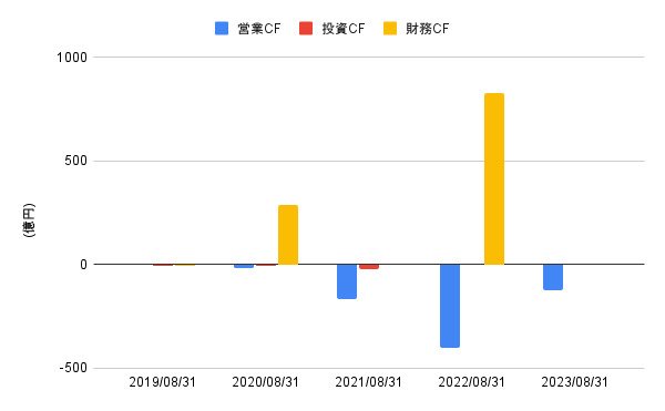 営業活動による現金の収支を示す営業キャッシュ・フローは前年比+276億9600万円となる▲122億9000万円。
