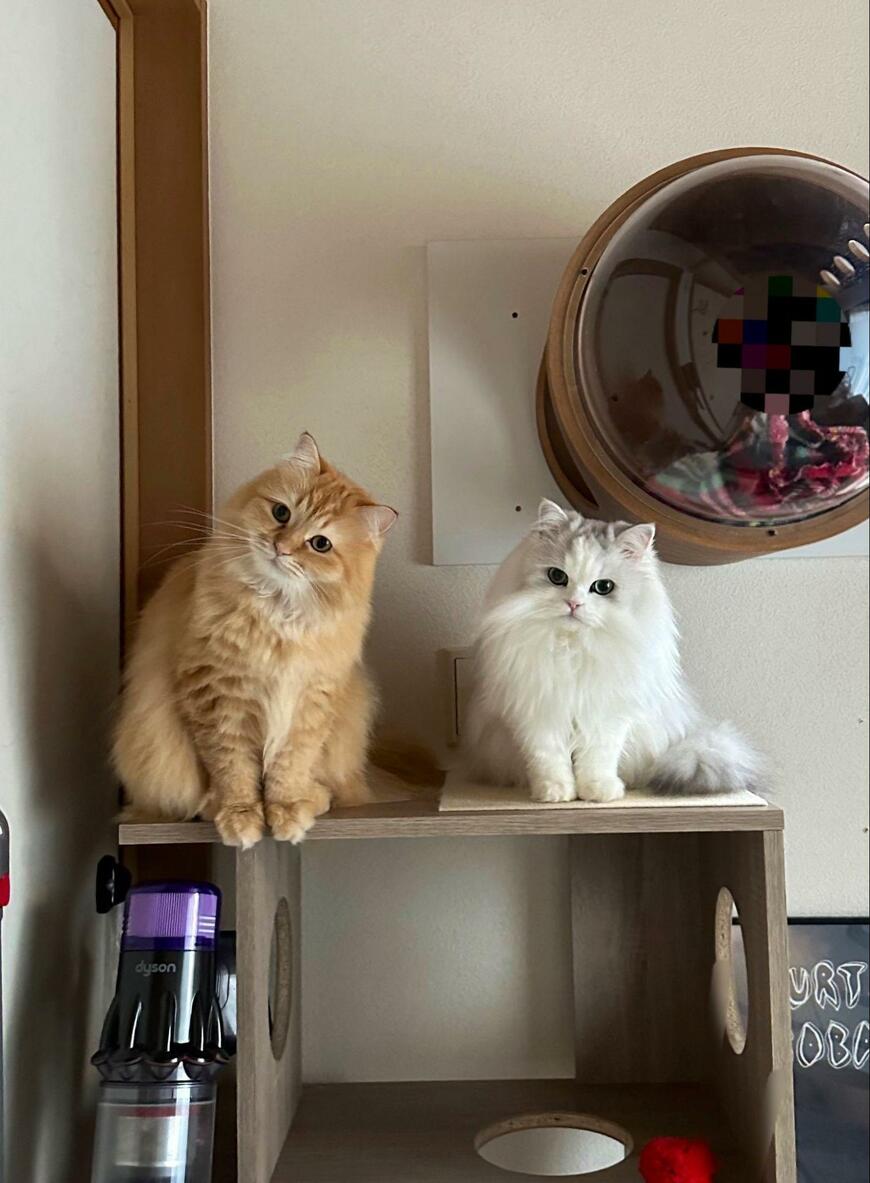 そこに写っているのは2匹の猫ちゃん。左にはエマちゃんが、右にはノーマンくんが座っています。飼い主さんはこのとき、2匹に「行ってきます」と声を掛けたそうですが……?