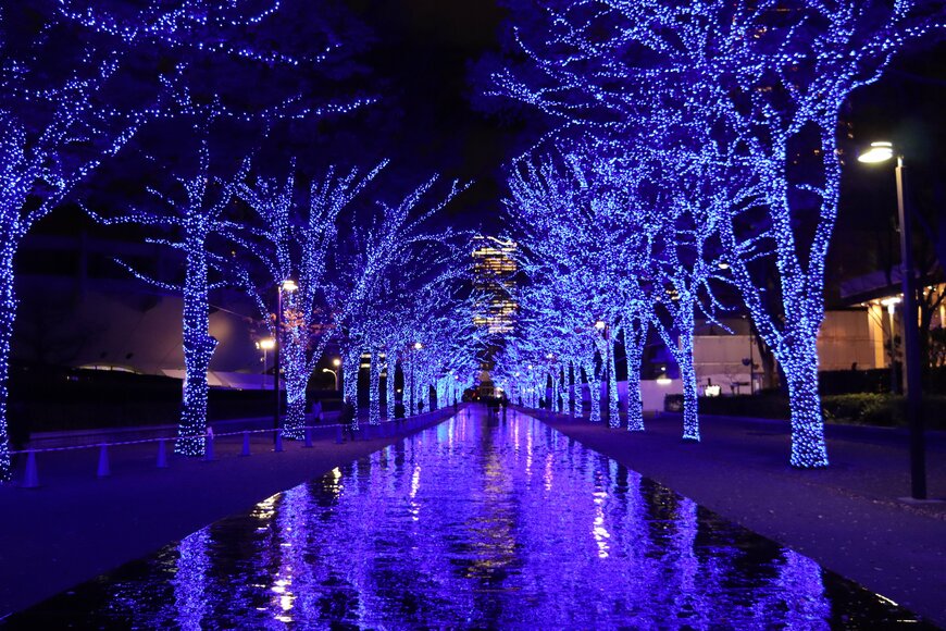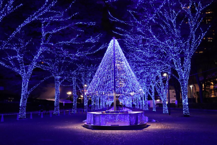今年はイルミネーションの電球の数をさらに増やして約77万球を設置。渋谷・公園通りから代々木公園のケヤキ並木にかけて、約800mにわたり青いイルミネーションが輝く様子を楽しめます。
