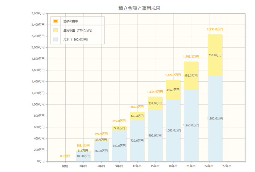 - 年利3%:約2230万円(元本1500万円・利益730万円)