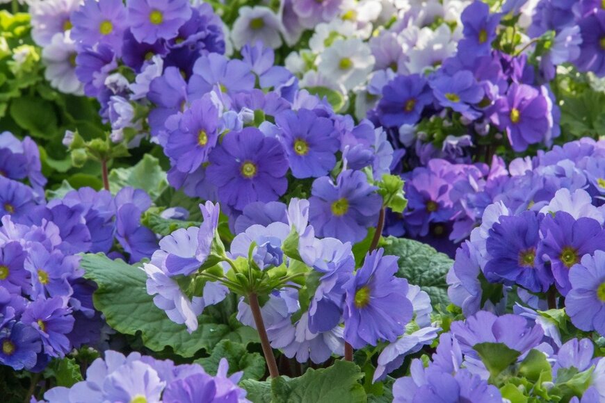 プリムラ属は大変品種が多い植物です。そのなかでも、日陰で育てやすいのがプリムラ・オブコニカ。