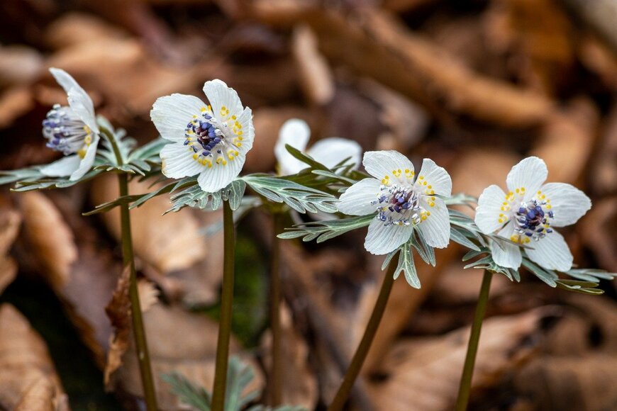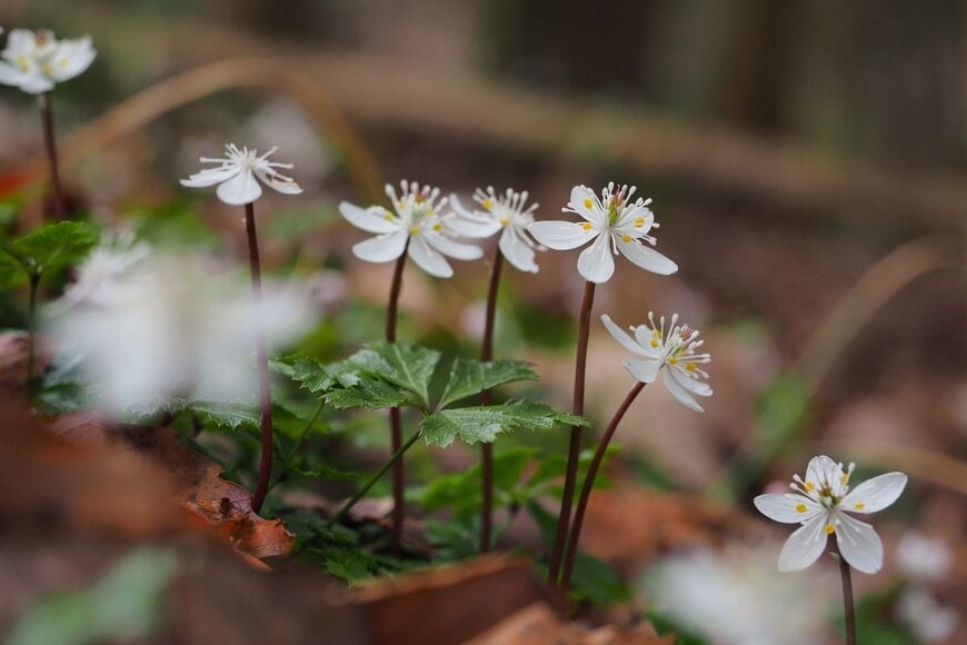 セツブンソウは2~4月まで開花する多年草。白い花を咲かせ、群生すると大変見ごたえがあります。