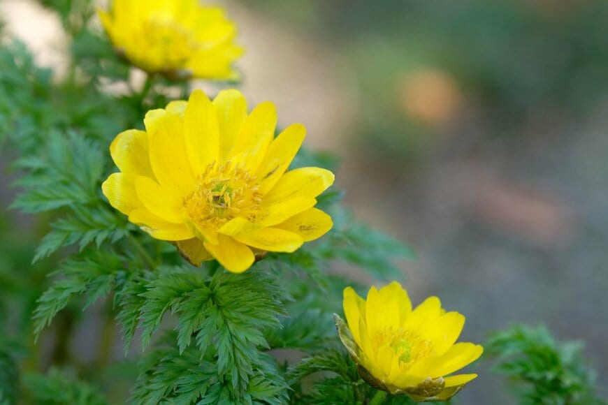 フクジュソウはイエローの可憐な花を咲かせる多年草です。2~4月に開花する多年草で、明るい日陰が生育場所に適しています。環境が合えば、株が充実して花数も増えていきます。