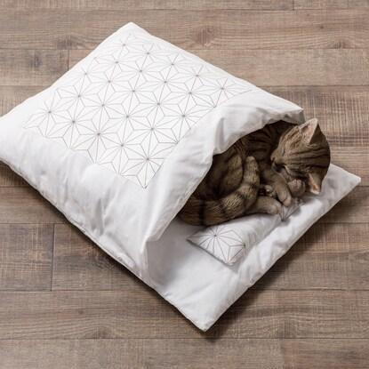 1. 麻の葉模様が素敵です! ニトリの猫用布団セット