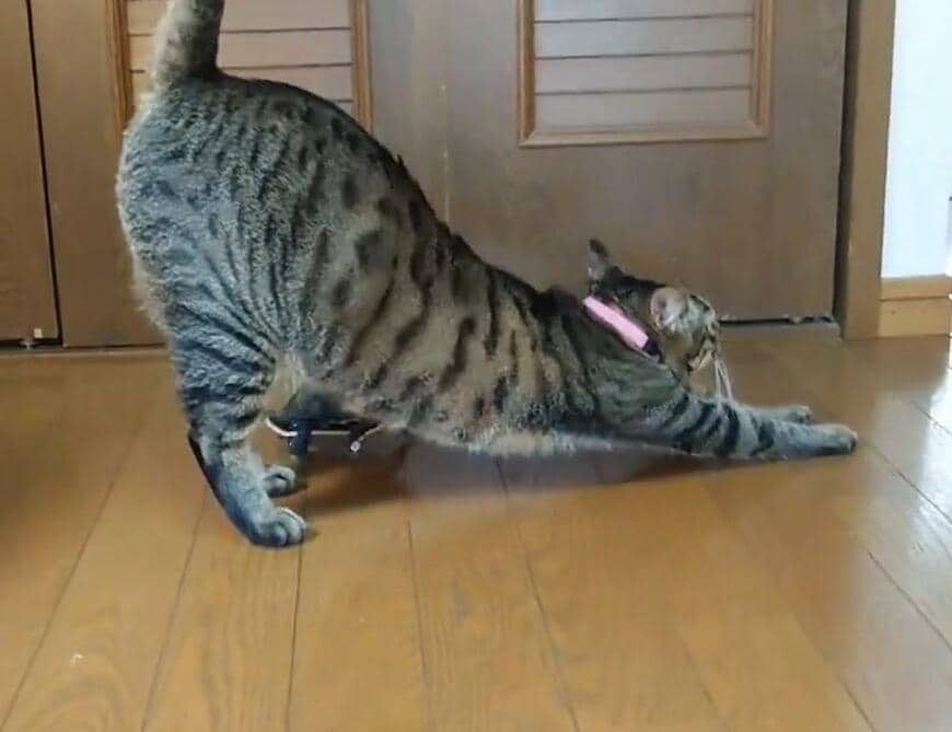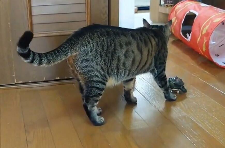 軍曹くんは、同居する2匹の猫ちゃんのことが大好き。動画には軍曹くんと、猫の女の子「小雪」ちゃんが写っていますが……?カメラを見る小雪ちゃんの横には、なんと「スケボー」に乗る軍曹くんの姿がありました。