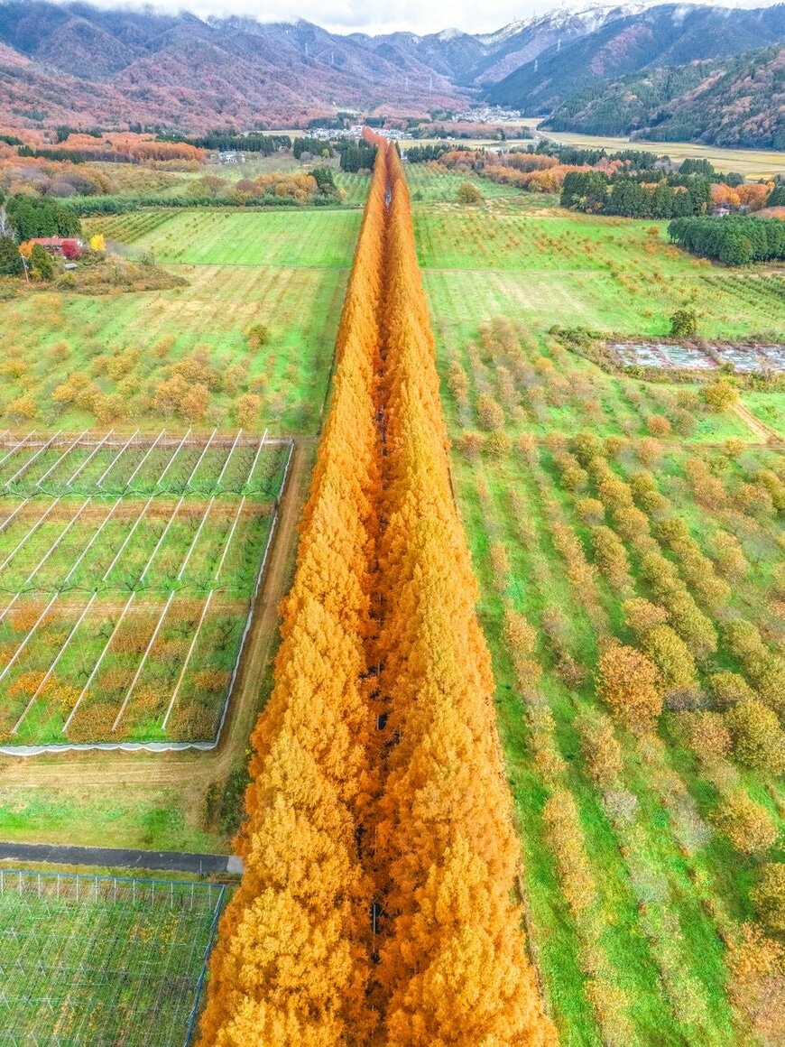 綺麗に色づいたメタセコイアが奥に向かってまっすぐと伸びていますね。額縁に入れて、家に飾りたい一枚です。