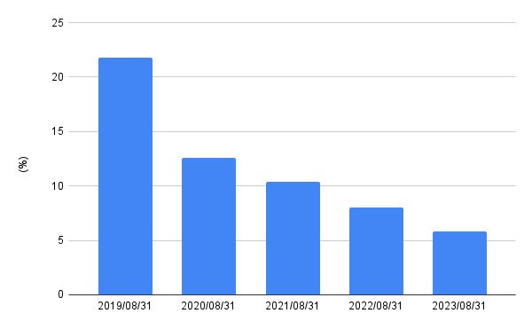株主資本に対する純利益の割合を示すROE(自己資本利益率)は8.6%です。