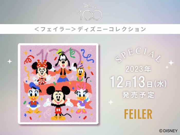 今回、その〈フェイラー〉ディズニーコレクションの最後を飾る第14弾は、「ディズニー100」をテーマにデザインした『DISNEY100/YEARS OF FUN (ディズニー100/イヤーズオブファン)』!