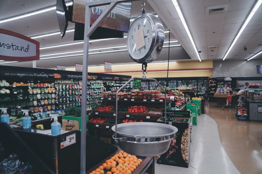 先ほども触れたとおり、野菜や果物が個数ごとではなく重量ごとに異なるため、レジには測りがついています。