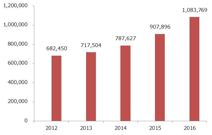 とはいえ、最近は外国人を見かける機会が増えたとお感じの方も多いと思います。その実感は、訪日外国人客数の動向を見ることで納得できます。実際、1月16日に日本政府観光局が発表した2017年の訪日外国人客数(推計値)は、前年比19.3%増の2,869万900人となり、過去最高を記録しています。