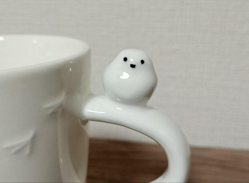 2.1 小さなシマエナガが、カップの持ち手にちょこん!かわいいです