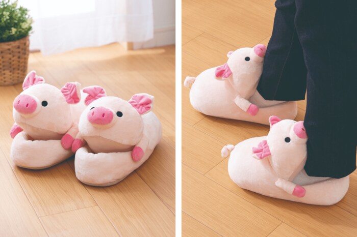 小さな前足とクルンと丸まったシッポがキュートな、ぶたデザインのスリッパです。