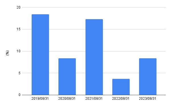 株主資本に対する純利益の割合を示すROE(自己資本利益率)は8.4%です。