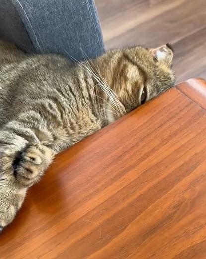 2. 「猫なのに狸寝入り」「見られてるww」たくさんの反応