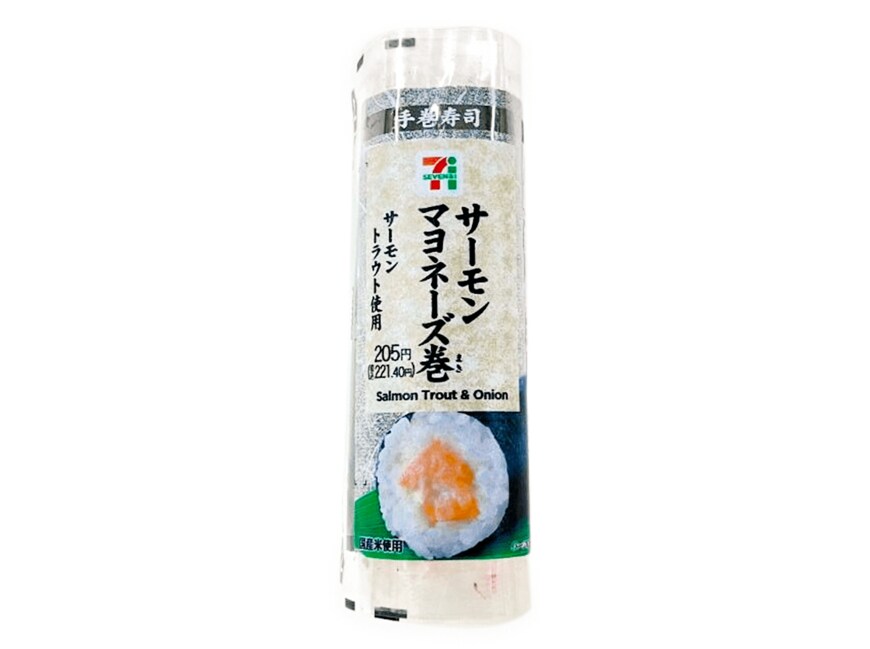 「サーモンと玉ねぎ,マヨネーズを組み合わせた手巻寿司です。」