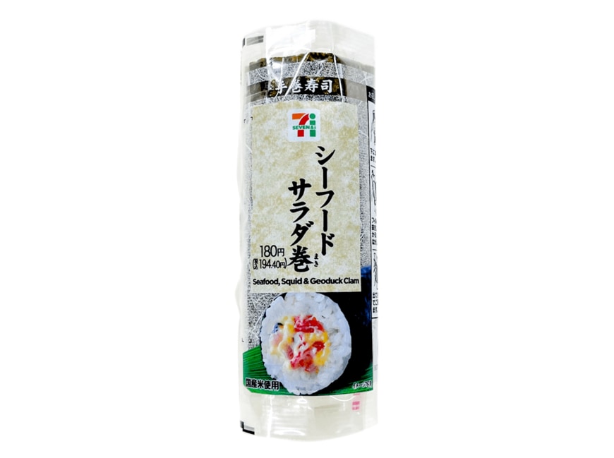 「具材に、カニカマ,イカ,クロミル貝を使用。具材の食感とマヨネーズのコクの味わいが感じられる手巻寿司です。」