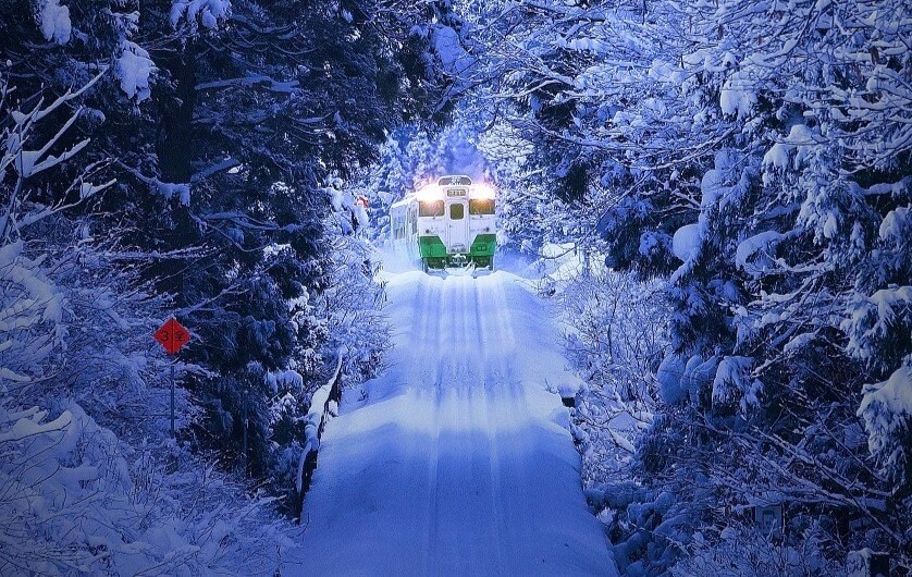 撮影時に苦労したポイントを尋ねると「木々への着雪が綺麗なタイミングで撮りたかったので、早朝の始発列車を狙いました。毎日、天気予報と睨めっこをして、雪がほどよく積もりそうな日を待ちました」と教えてくれました。