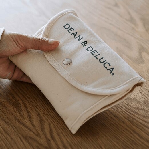 ディーン&デルーカで使用されているショップバッグがモチーフになっている、ミニマムサイズのエコバッグ。コンパクトなサイズですがマチもしっかりあるので、通勤途中で購入したランチを入れたり、コンビニで少し買い物したりしたときにも重宝します。丸めると手のひらサイズになるのも魅力。1つ持っていて損はないバッグです。