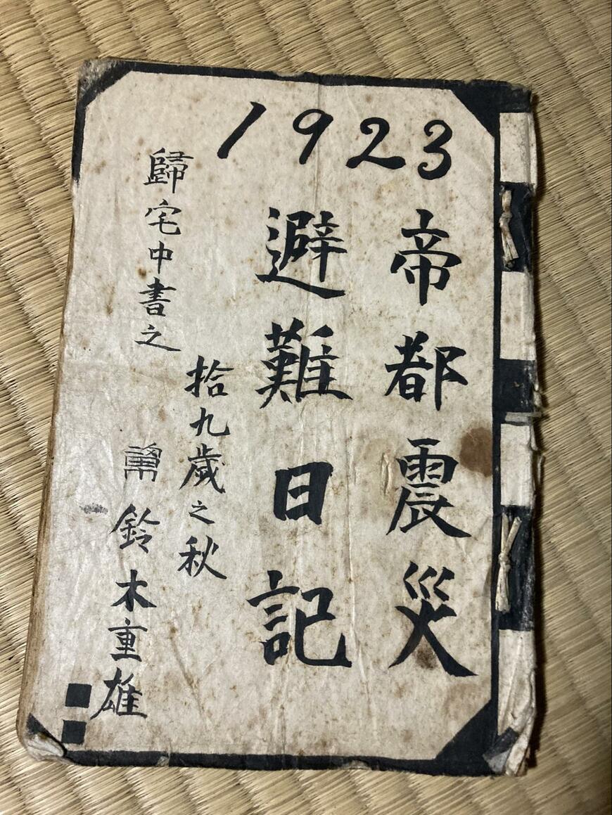 そこに写っているのは、「帝都震災避難日記」と記された一冊の手記。1923年(大正12年)に発生した「関東大震災」の避難日記のようです。左側には氏名と年齢らしき記載も見受けられます。