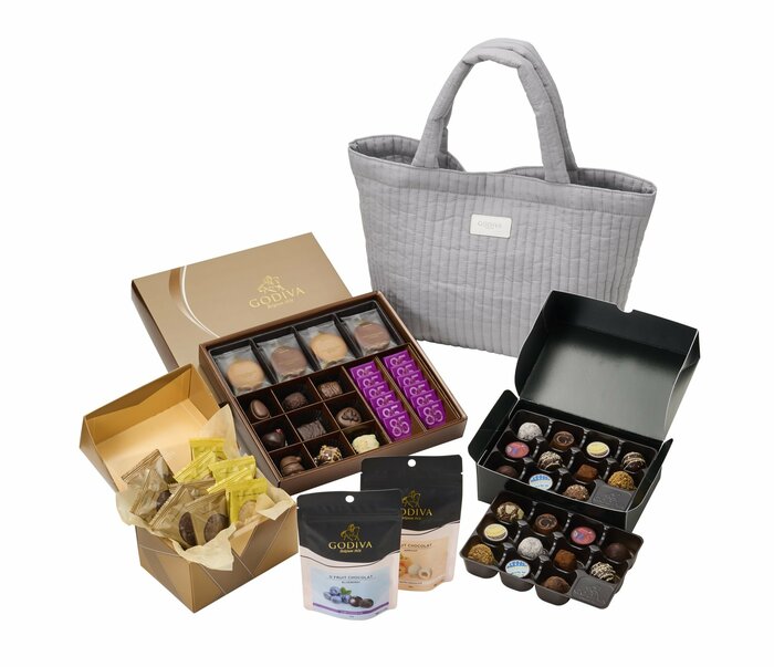 - セット内容:2024 ニューイヤー ハッピーバッグ C アソートメント 22粒入、2024 ニューイヤー ハッピーバッグ C クッキー&チョコレート アソートメント クッキー8枚/チョコレート21粒入、フールセック サレ(10枚入)、G フルーツショコラ ブルーベリー、G フルーツショコラ アプリコット、ゴディバ オリジナルバッグ