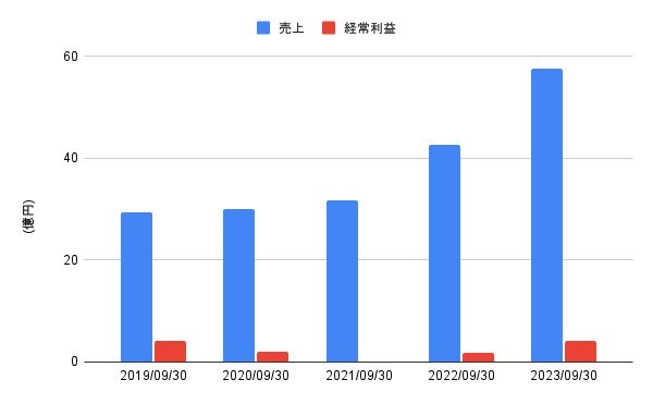 売上は前年比+14億8889万4000円となる57億5730万6000円、本業の儲けを示す営業利益は前年比+2億4756万3000円となる3億9136万7000円です。