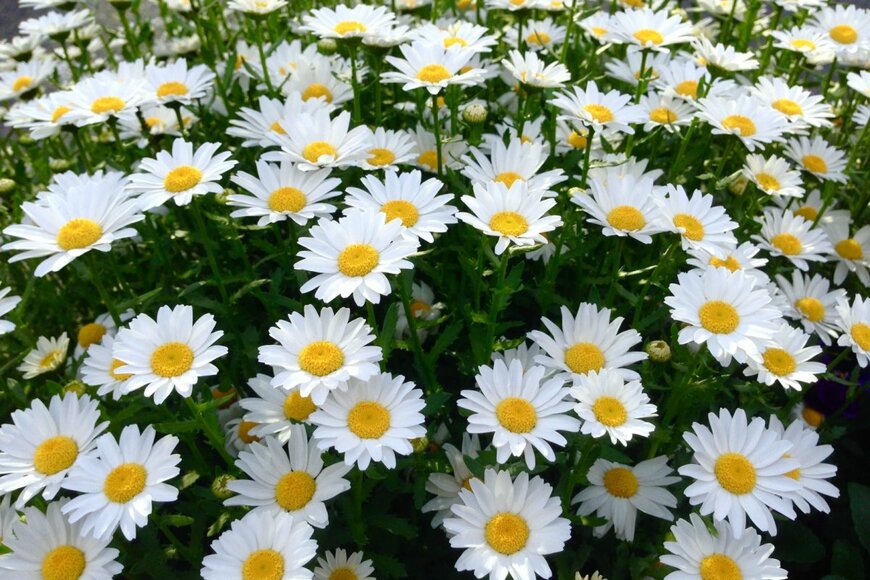 キク科のノースポールは強健な性質の一年草。ホワイトの花弁が愛らしく、よく茂る葉とのコントラストが春らしい雰囲気です。日によく当てて育てましょう。