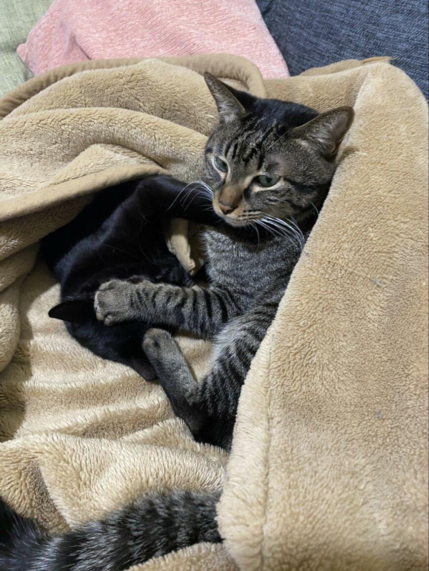 優しいタッチでケンカを回避し、最後は毛布を譲る優しい猫ちゃんがX(旧Twitter)で注目を集めています。