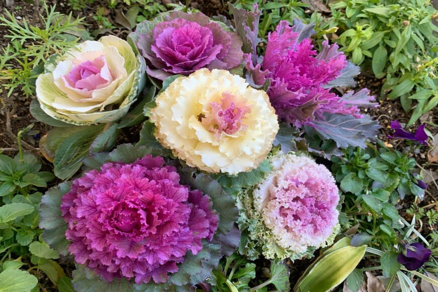 日本では正月花として昔からなじみ深いハボタン。近年では品種改良が進んでコンパクトになり、葉色のバリエーションも豊富になってきました。さまざまなハボタンで寄せ植えするのもオシャレです。※参考価格:300~500円前後(3号ポット苗)