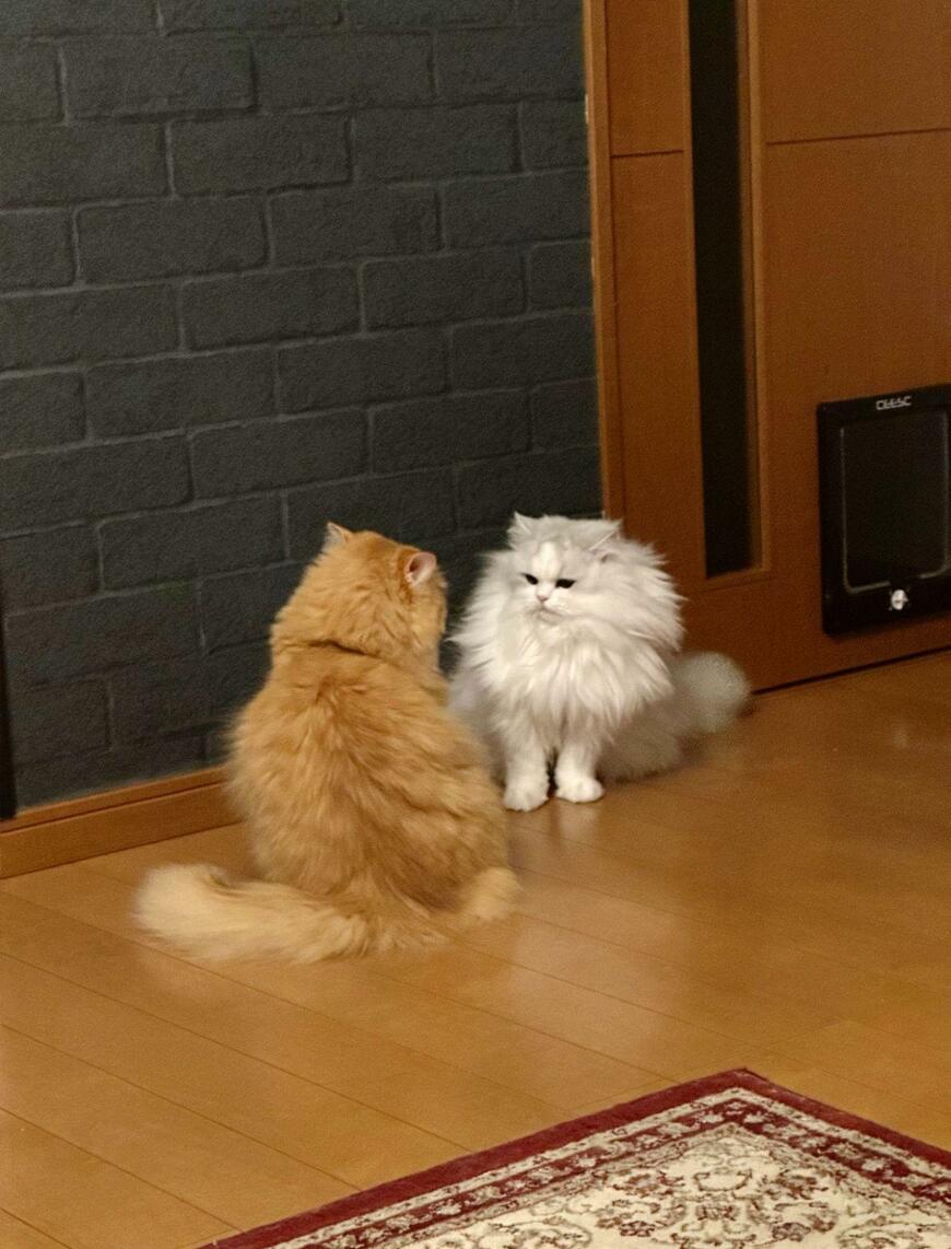 長毛猫ちゃん達が「静電気でボフボフ」になりながらケンカする様子がX(旧Twitter)で注目を集めています。