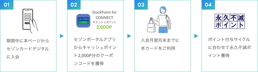 サービス提供に合わせて、入会キャンペーンも実施。新規入会でStockPoint for CONNECTで使用できるキャッシュポイントを2000ポイントプレゼントします。期間は2023年12月11日~2024年3月10日です。