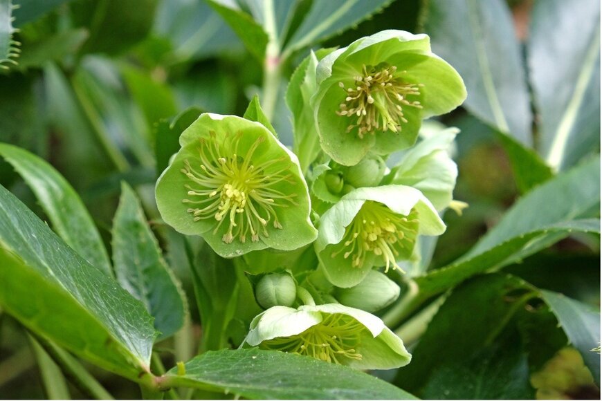 半日陰の風通しの良い場所を好み、開花期は1月~3月。クリスマスローズは、まさに冬ガーデン向けの花です。過湿が苦手なので、庭植えにする場合は植える場所に注意しましょう。強い直射日光が当たる場所も避けて植え付けます。